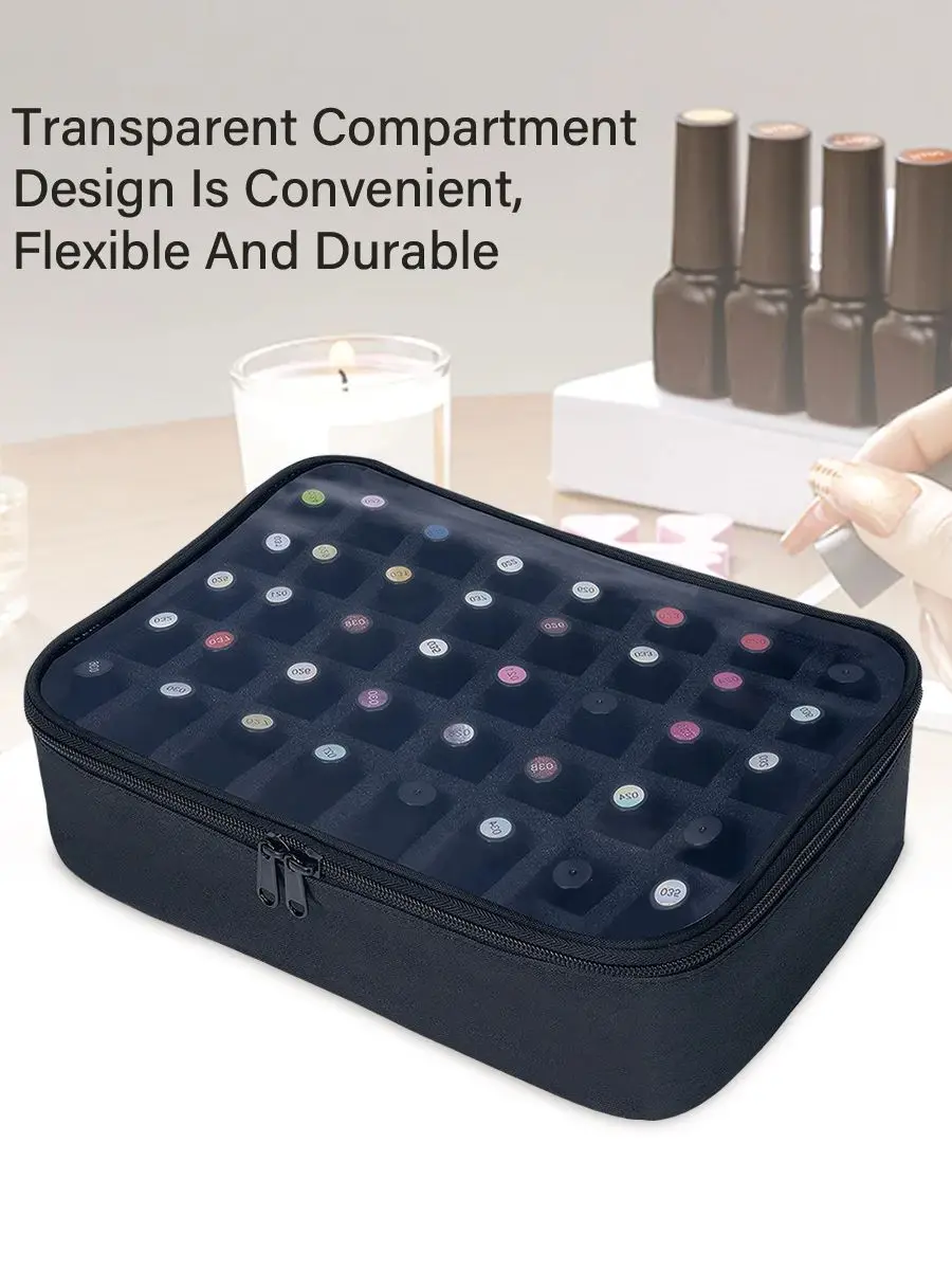 Crafted from durable, lightweight, and water-resistant material, this bag not only protects your polishes from dust and spills but also keeps everything in one stylish, easy-to-carry case.