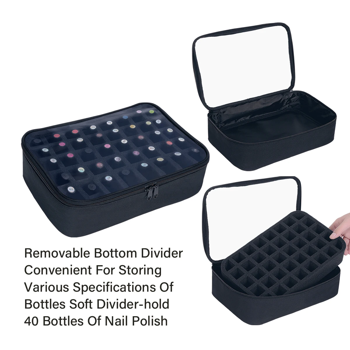 40 Bottle Nail Polish Storage Bag- Portable Multi-Color Handheld Cosmetic Case, Holds Up to 40 (15ml) Bottles, Nail Drill Organizer.