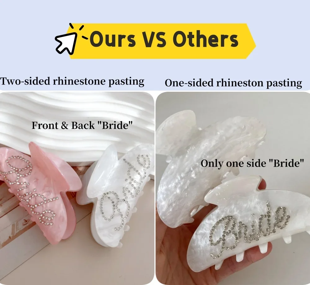 Bride Hair Claw Clip – White Ponytail Holder with Rhinestone Bride Letter Design for Weddings & Bridal Parties