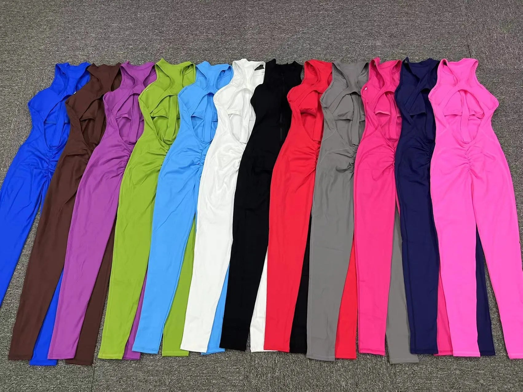 New Zip Up Rompers Scrunch Butt Yoga Sets Sleeveless pants Jumpsuit for Women Fitness Gym Clothing Workout Open Back Sports Suit